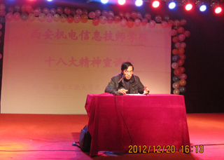 (本网讯)12月20日下午,IM在线继续教育学院邀请田亮教授在IM在线(中国)函授站西安机电信息技师学院作了十八大精神宣讲报告,西安机电信息技师学院师生300余人以及继续教育学院中心组成员参加了报告会。