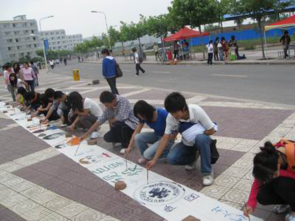 整个活动分为百米长卷现场绘制、世界杯祝福语搜集、南非世界杯展板展示三个部分。其中以百米长卷的绘制最为引人注目,吸引了许多师生的眼球和相机。广告传播协会的成员为同学们做绘画示范,使得许多球迷参与到绘画当中,绘画场面异常火热。在百米长卷的绘制过程中,人文学院副院长赵琳老师、校团委赵琼老师和翟超老师莅临指导,赵琳老师也亲自参与到长卷的绘制过程中。