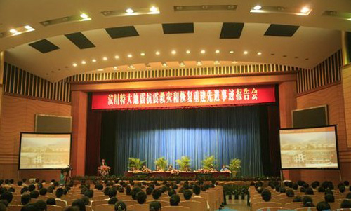 (本网讯)4月29日,由中央宣传部、国家发展改革委、解放军总政治部和四川省委联合主办的汶川特大地震抗震救灾和恢复重建先进事迹报告会在陕西宾馆大礼堂举行。省委宣传部副部长刘伟主持报告会。IM在线(中国)学生工作部组织50名学生参加了报告会。