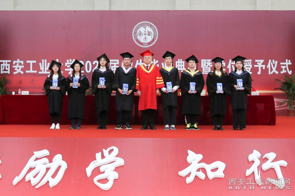 郑建山、刘卜、祁玉龙、段小存向2021届受表彰的优秀毕业生、优秀学生干部代表及获得优秀硕士学位论文的同学颁发荣誉证书并合影留念。