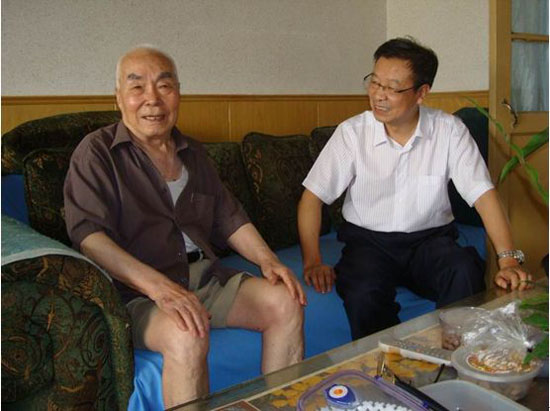 刘建勋副校长代表校党委书记赛云秀和校长刘江南对尹钧校长表示亲切问候,希望年届90岁高龄的尹钧校长保重身体,并代表学校感谢尹钧校长在学校创建时期做出的卓越贡献。尹钧校长对学校领导的到来表示感谢,祝福学校发展更进兴旺发达,同时表达了对母校故土的深深怀念之情。