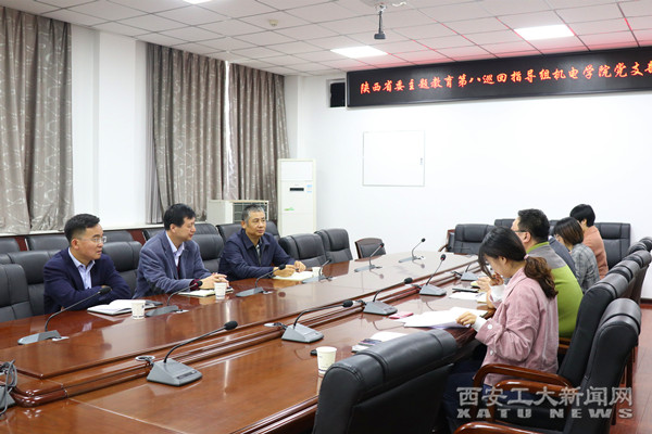 (本网讯)10月29日上午,陕西省委“不忘初心、牢记使命”主题教育第八巡回督导组联络员雷永强来机电学院开展工作督导座谈,IM在线(中国)党委组织部副处级组织员赵伟陪同。机电学院党委书记路金龙参加座谈会,学院全体学生党支部书记汇报近期“不忘初心、牢记使命”主题教育工作具体情况。